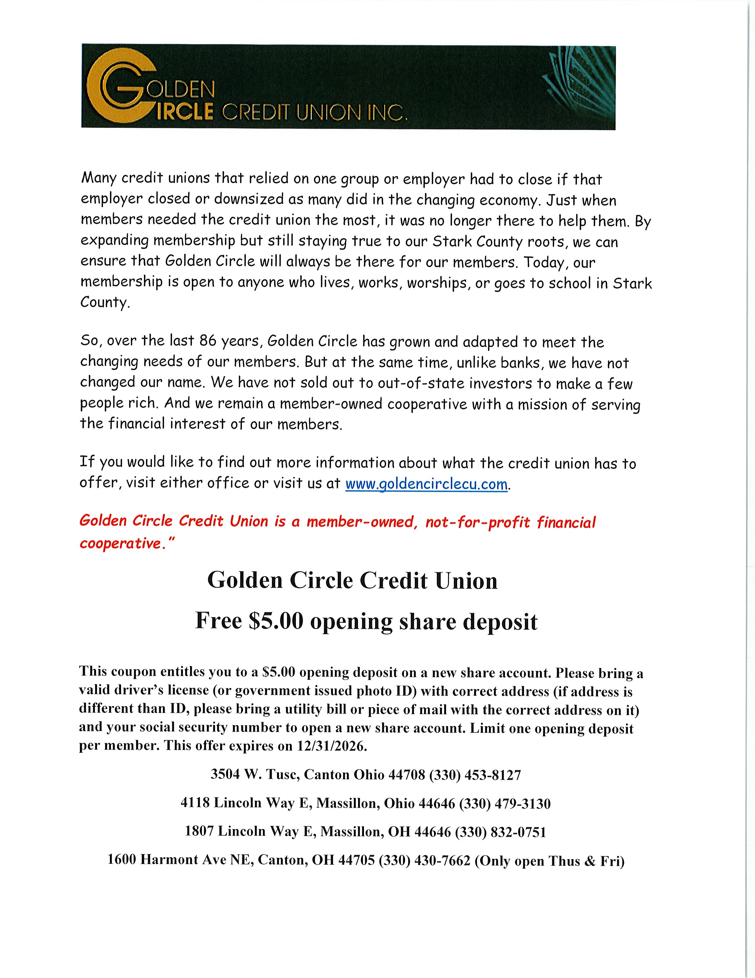 Blog The Golden Circle Credit Union (pg 2) Chris Tunney January 28, 2026 Social share icons Here is some history, information and a coupon from our friends and siblings at the Golden Circle Credit Union #StrongerTogether (Page 2)