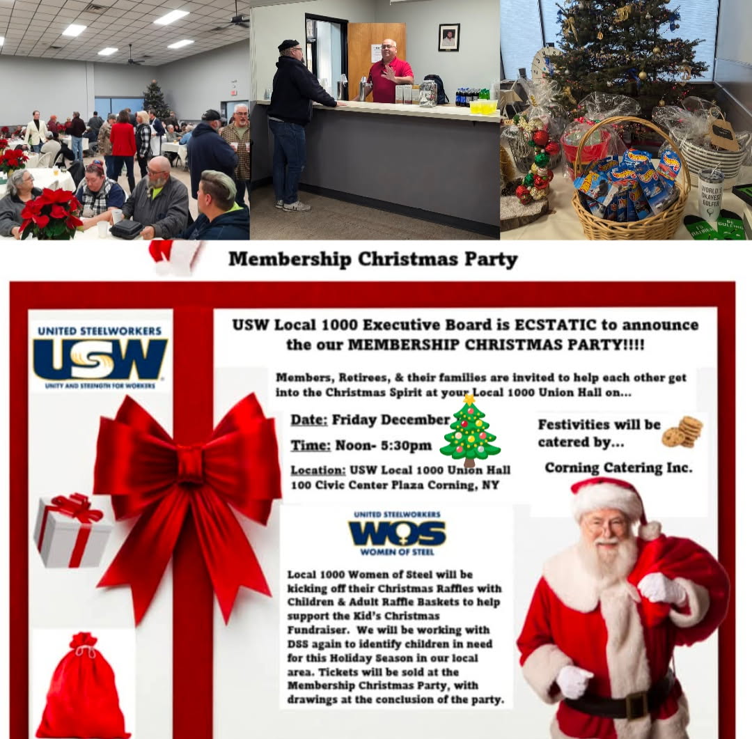 Annual USW Local 1000 Membership/Retiree Christmas Party. Come visit and catch up with previous and current fellow union brothers and sisters. Member's and retiree's immediate family are welcome to attend.